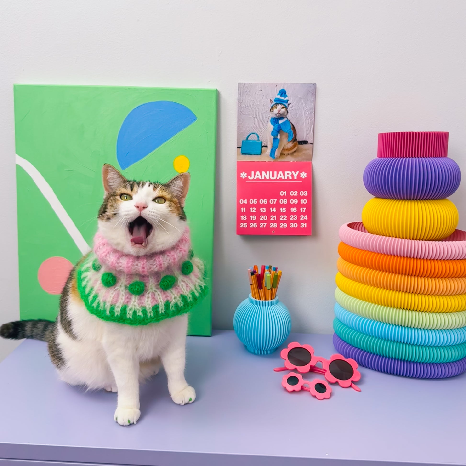Get ready to celebrate each month with Pony’s playful spirit and vibrant style—because who wouldn’t want a year filled with fabulous feline flair? ✨📅🐾